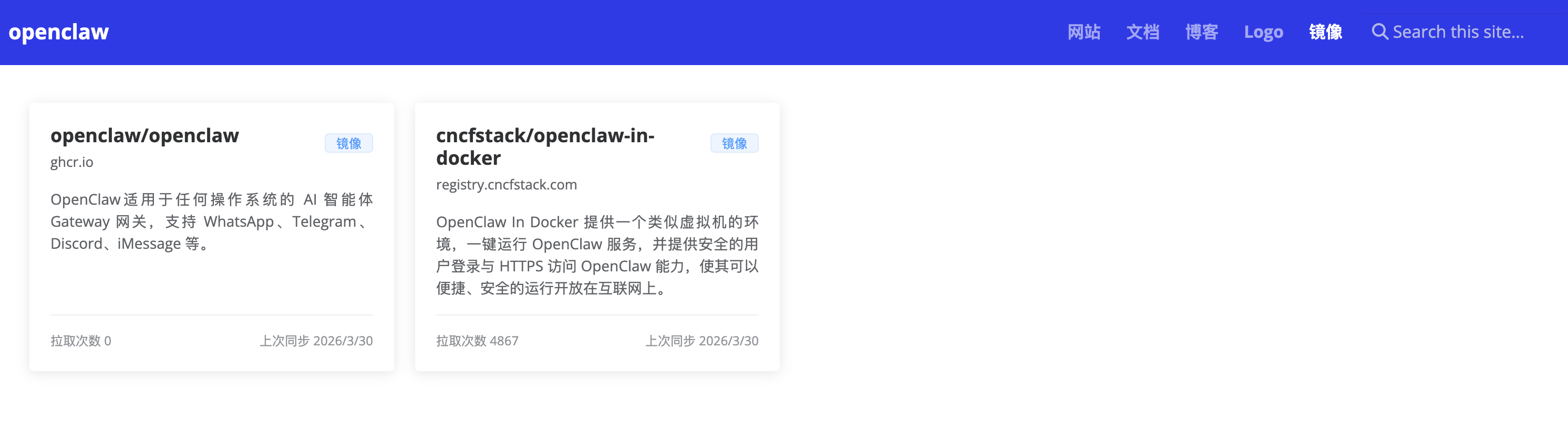 - Docker镜像: 国内容器镜像仓库,高速下载,且每天定时同步,保持最新。