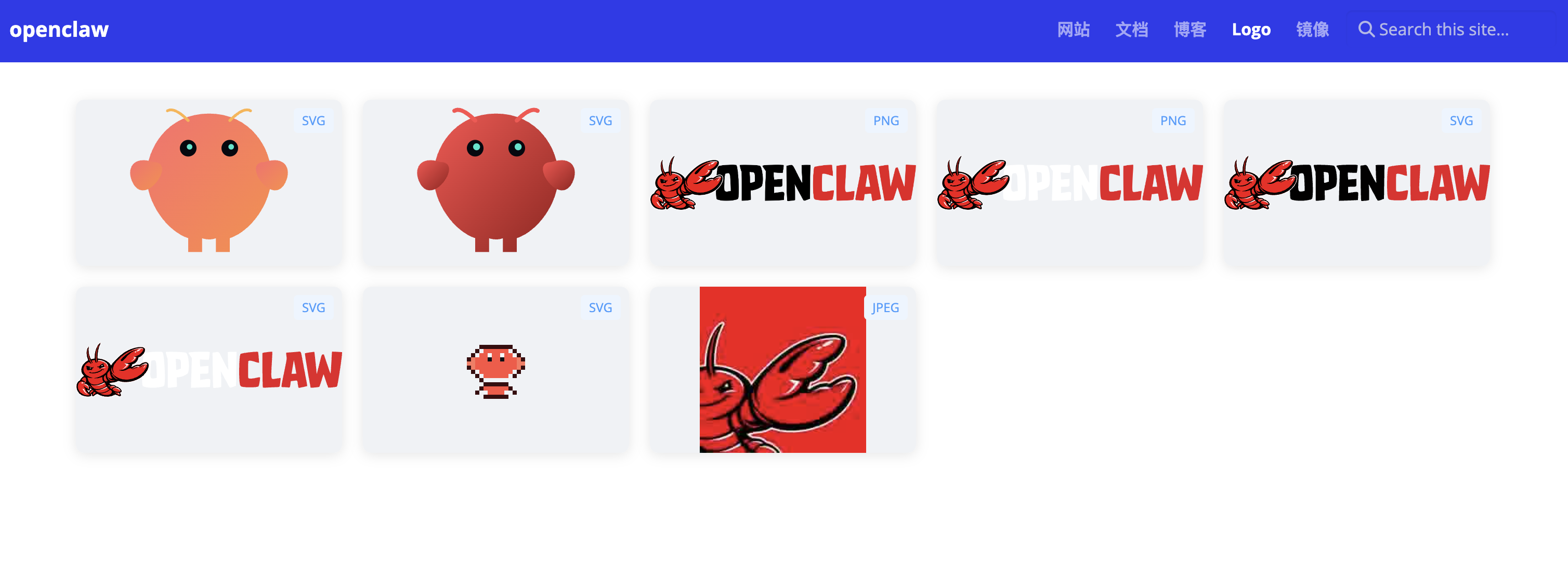 - Logo资源: OpenClaw 相关 Logo 资源:包含 SVG、PNG等格式。