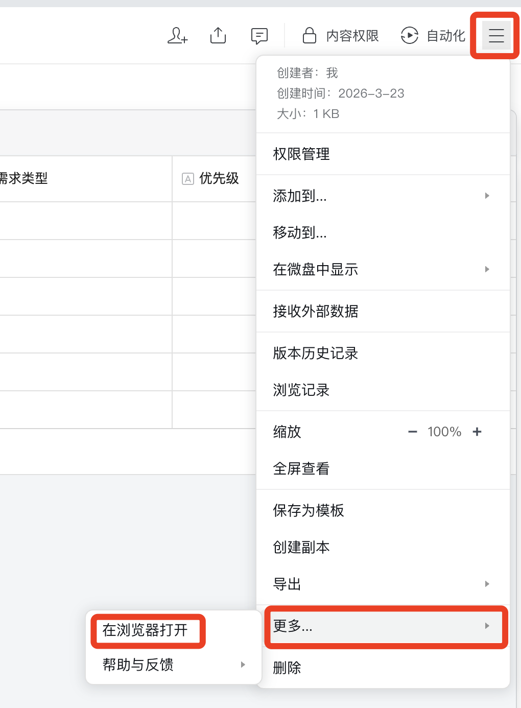 在企业微信文档中,双击打开任意文档后,在文档的右上角有个功能管理的按钮,找到【在浏览器中打开】点击后即可在浏览器中打开这个文档。