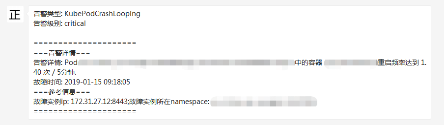 这时如果某一容器频繁重启,可以接收到如下的告警内容: