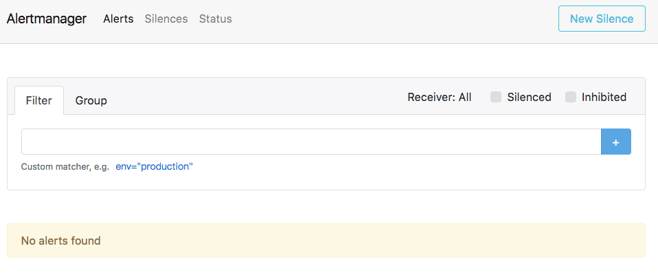 Alertmanager启动后可以通过9093端口访问,http://192.168.33.10:9093